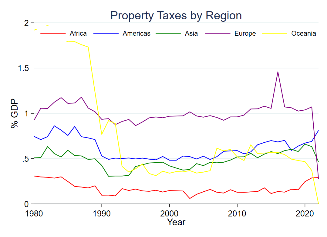 - Observation: Property taxes are underutilized globally, contributing less than 1% of GDP in most regions, except in Europe where robust valuation systems exist.